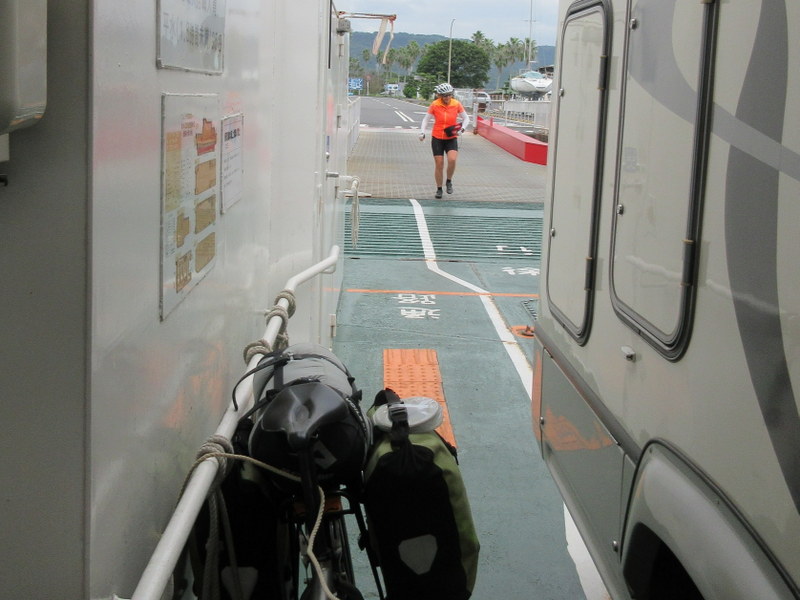We were up with the sparrows with a goal of reaching Minamiosumi ferry in time for the 11Am sail. We knew the route back as it was just a repeat of yesterday in reverse. Working as a well oiled machine, we managed to get everything done and be rolling from camp at 7:10 – pretty amazing for us. By luck, it was breezy overnight and the tent was dry.