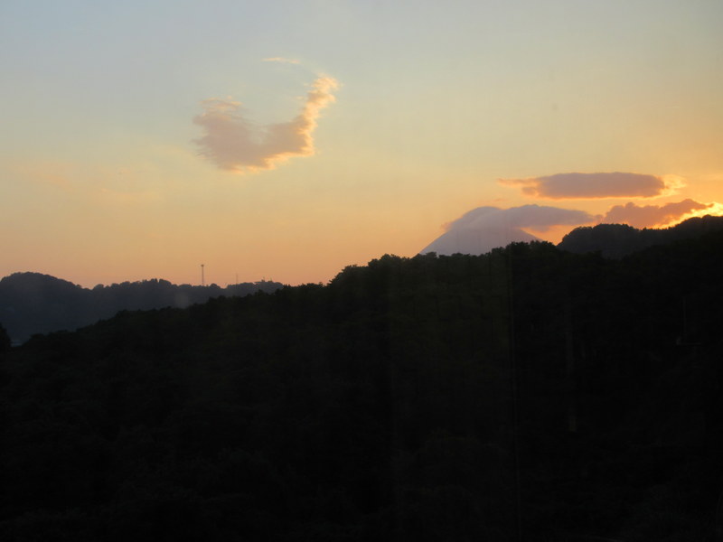 Sunset from our room, Mt Kaimondake hanging around for our visit tomorrow