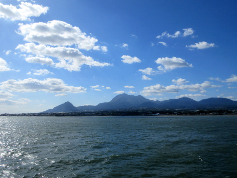 We made our way to the Taira Port in Kumini to catch the ferry across the Ariake Sea to the other part Kyushu. We weren’t really watching the time, as we knew the ferries were relatively frequent, but we made it in time to catch the 9:55 ferry. It was pretty cold waiting for the ferry, as the wind was blowing pretty good and the temps were not that much higher even down near the water. It’s only a 45-minute ferry ride, but it seems pretty well-used and they even put vehicles on 2 levels.