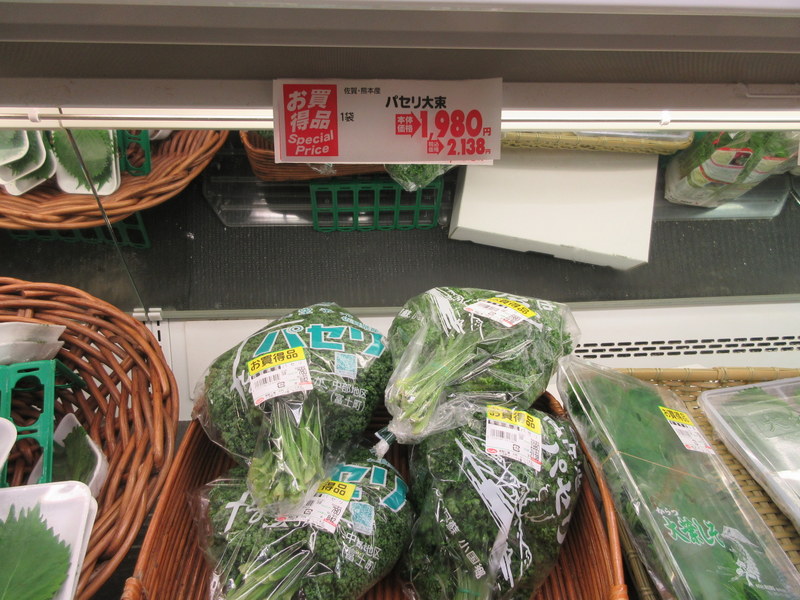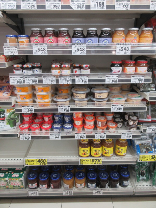 As for products, I’ll start with an area many Westerners have heard about, the price of fresh fruit and veggies in Japan. Yes, we have found $14 USD cantaloupes and $14 USD bundles of parsley. But then we found nearly normal priced bundles of other herbs and nearly the same price for apples. We get lots of pickled veggies in our meals but not much fresh so I don’ think they’ve worked out how to reduce the prices across the board but there is some progress making fruits and veggies more accessible.