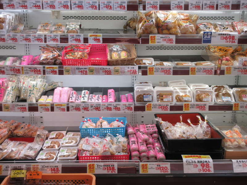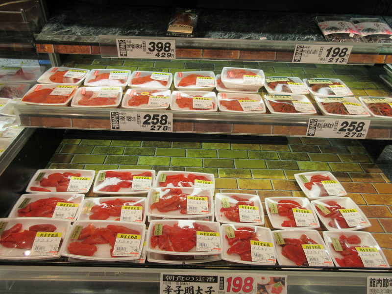 Fish and seaweed, on the other hand, are prolific. The fresh fish section of most supermarkets is massive. You can get any fish you can imagine, if you can read the Japanese label and then do the Japanese name to English name conversion. Sticking with octopus might make things easier as it looks the same everywhere. Not surprisingly, seaweed is plentiful and in many shapes and sizes. We particularly enjoy the little 5 packs you get with brekkie for your fish and rice. And if you like fish cakes, there you’ll be again spoiled for choice. I’m not sure what’s in a fish cake that makes the white part so white and the pink part so pink but that’s more of a processed foods discussion than one of availability. If you like fish roe, from salmon down to those teeny flying fish eggs, well, you’ll be able to eat it to your hearts’ content.