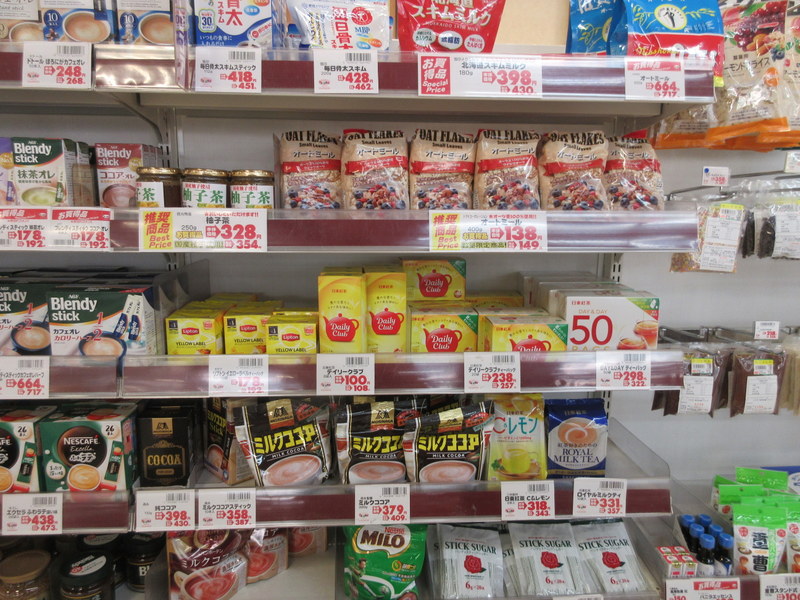 If you like tea, you’d probably think Japan is a place to come. It might be but not in the supermarket. There are very few choices of bagged tea and almost no caffeine free or herbal tea. We’ve spent countless hours trying to replenish Nancy’s supply of chamomile tea – she likes a cup at night – forget it. The loose leaf section is larger but even that section is considerably smaller than you’d think for a tea drinking culture.  I expect that most tea is purchased through specialty tea shops, rather than at the supermarket.