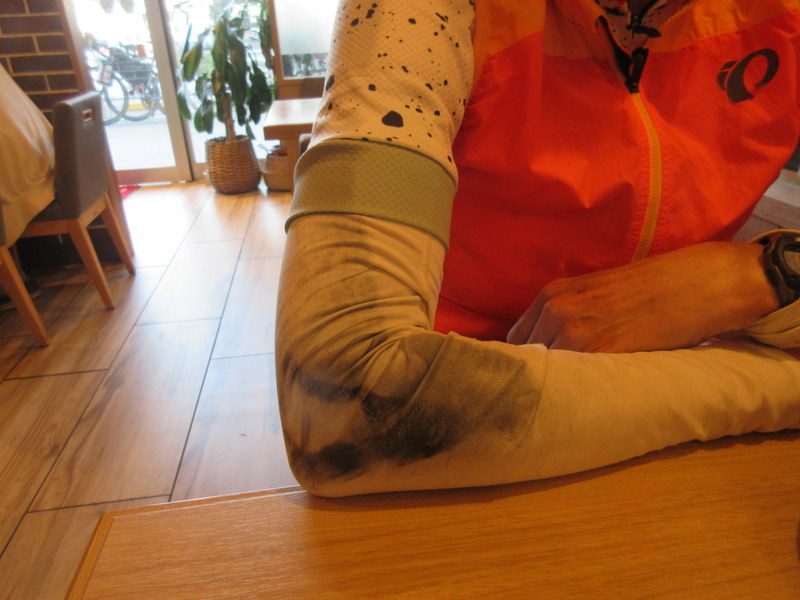 The profile for the day had two hills that sort of looked like they could be tunnels. Sometimes Komoot gets confused. The first hill was actually a hill and no issue. The second hill was in fact a tunnel and it turned out to be a bit of a rough ride. We had checked on Google street view yesterday and saw there was a sidewalk on the wrong side of the road with a railing that separated it from traffic.  The sidewalk looked relatively wide so we figured it would be okay to ride on that rather than the road.  Well, the Google street view was a bit deceiving, as the sidewalk narrowed as it entered the tunnel and it was about 6 inches too narrow to ride safely. And it was 3.7k long. The first 1/3 was uphill and really hard to ride without bumping bags or shoulders into the walls or railing. Both Nancy and I had minor bonks and ended up getting dirty arm warmers and jerseys from bumping the tunnel walls.