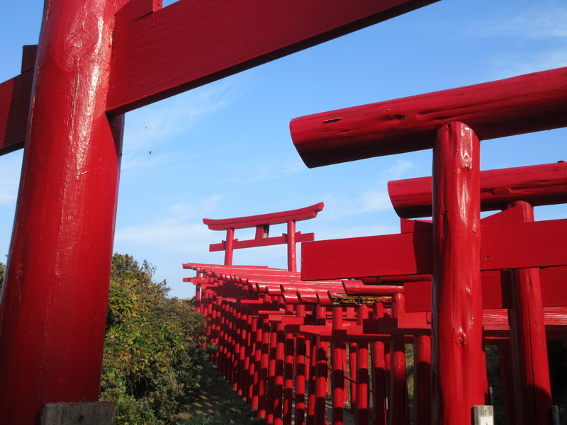 As for the shrine, it was just as the photos online, 123 red gates spilling down the hill towards the sea. The top gate was built in 1955 not long after someone had a vision about a white fox. The white fox is considered a god in Shintoism (or messenger to the gods, or something like that).  The 123 gates were added starting in 1987, some of them being moved from a different shrine. There is a high likelihood that I’ve missed the subtlety of the story here but we liked the views. Later we read that on weekends there can be an hour’s long wait just to enter the car park. We had it mostly to ourselves other than the work crew at the bottom (putting in a new landing) and the tour bus that arrived as we were leaving – lucky us.