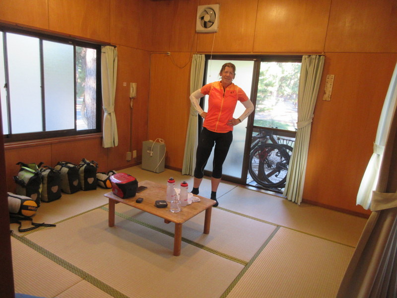 Even though we are in an auto camp we are not staying in our tent. We missed out on a bungalow after the big rain day a few weeks back so tonight we have treated ourselves to a “make-up” bungalow. It’s basically one tatami room with a fridge, microwave and kettle out in a little enclosed porch area. We have to use our own sleeping bag but it’s dry so there will be no issue with a wet tent. The auto camp is massive and I think there are about 6 guests, Nancy and I being 2, in total staying here tonight. They have a long list of rules and there won’t be a troop of Aussie gals to blame anything on so tonight, we’ll be on our best behavior.