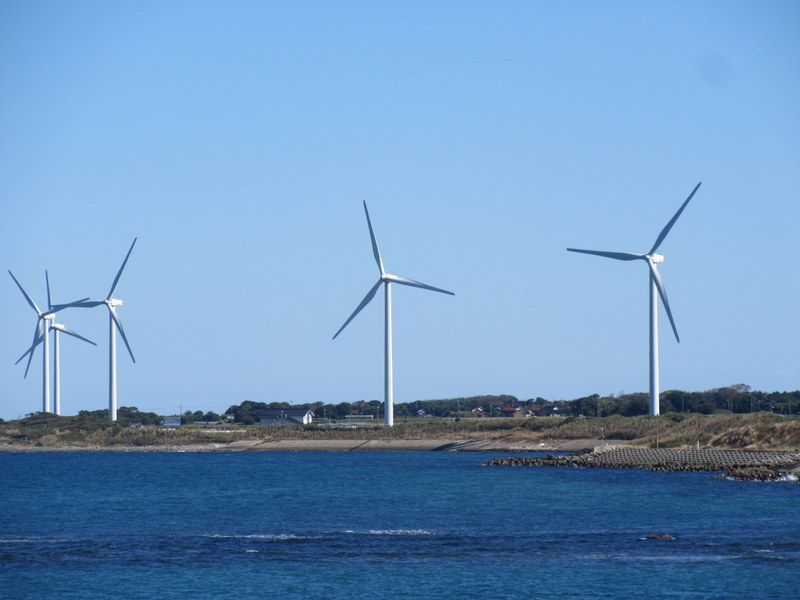 Japan was making good use of the tailwind today, as were we. We saw several batches of wind turbines, all spinning. I didn’t really notice until I uploaded my photos that I had taken quite a few photos of them, plus a good number of the sea. Turbines always make me feel nice, except the other day when the paraglider was flying close to one!