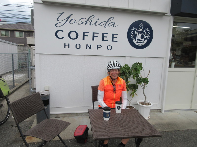 We had quite a few photo stops today, as you do when you are in cruising mode. But for sure the stop of the day came when we stumbled on Yoshida Coffee Roaster’s warehouse. Earlier in the day we searched for “specialty coffee” on Google maps but couldn’t find any on our route. Then in one of those “even a blind squirrel finds a few acorns” moments, we rode right past their warehouse at time when Nancy was double checking a turn. You didn’t have to ask twice – we stopped for a fresh cup in the shadow of their roasting chimney.