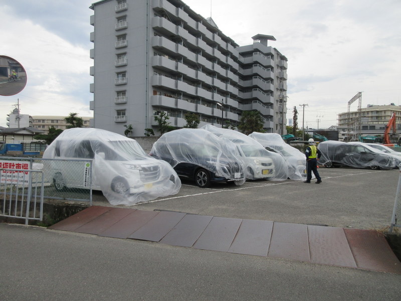 This one took me a minute to work out. There is a construction site behind the cars. The cars have been covered by giant “shower cap” like covers to protect them. The chap with wand is trying his best to keep the caps on during a wind gust. The owners of the cars are nowhere to be seen – probably wouldn’t even know this was happening. I love Japan.