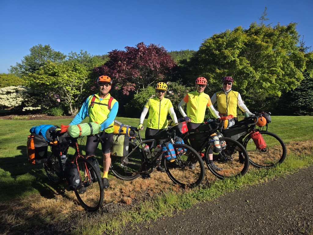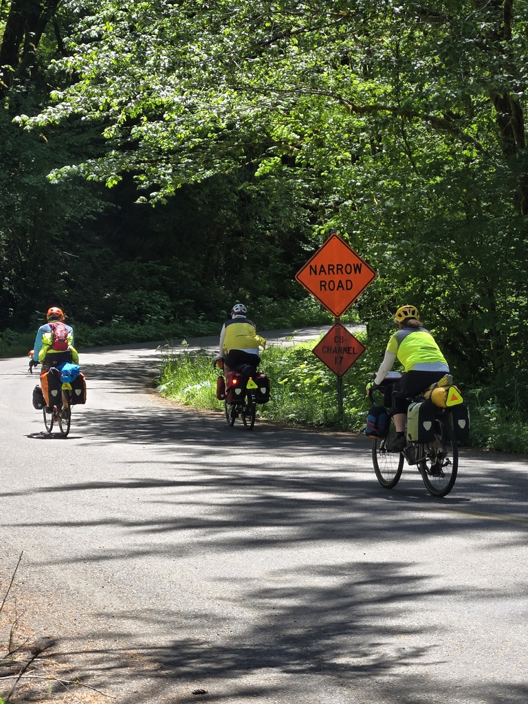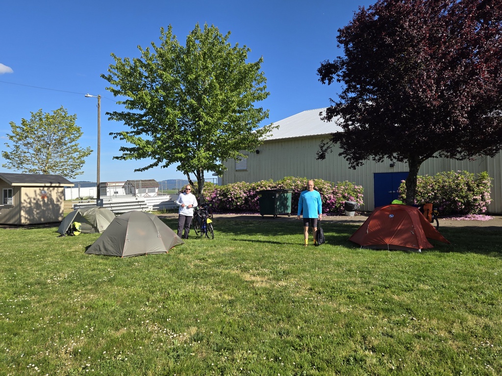 Wow, what a day. I tried hard to find a way to make today shorter. 75 miles and 4,100 feet of climbing with our general level of fitness was a big ask. Well, it was, but we did it. Everyone rode strong and we arrived in Rickreall with 40 minutes to spare before the fairground’s office closed. Well, I should say that Curtis, Chris and I arrived with 40 minutes to spare. Nancy was in lickety-split mode and arrived 10 minutes before us. She was nervous that we would miss the office and rode like the wind.