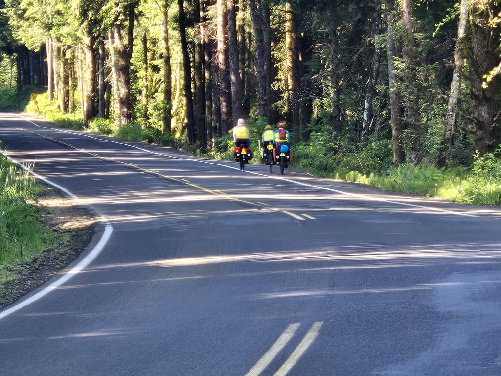 We had a nice last view of the Pacific at the top of the climb, followed by a cruisey 5 mile run out to Highway 101. When looking at today’s route I was excited about the back roads and climbs but nervous about the 4 miles we had to ride on 101. I needn’t have worried. It was downhill, we had a tailwind and there was not too much traffic. We turned off the highway at a small berg called Beaver.