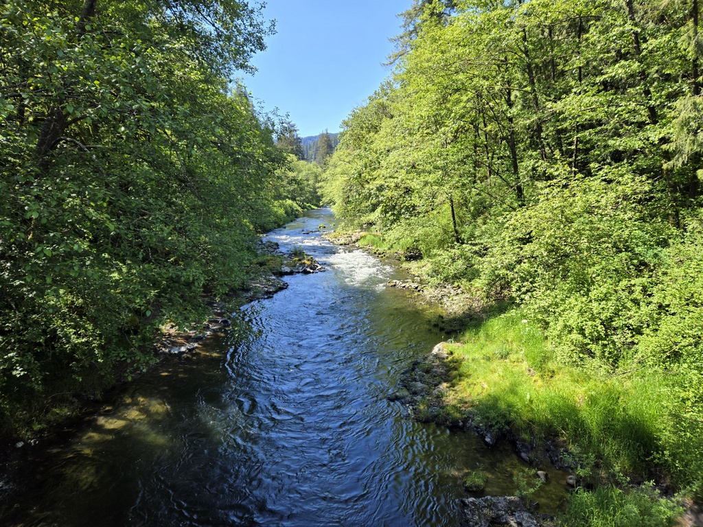 From Beaver it we had a lovely 10 mile ride up the Nestucca River. More traffic free roads and some lovely views of the river. It was heaps better than last year when we rode it downhill in the rain on Cycle Oregon. We stopped at Blaine Fire Hall for a late morning tea before pushing on to the start of the hardest and longest climb of the day. We had about 10 miles of 3-13% grades up and over the Coast Range, reaching about 1,800 feet at the top. Considering we started at sea level, it was a good climb. We all rode our own paces and finished at the top within 10 minutes of each other.