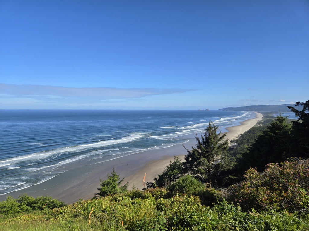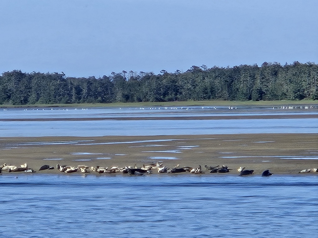 The first 5 miles we rolled along the edge of Netarts Bay, taking in the views and enjoy a very nice morning spin. There were several herds (?) of sea lions out on the sand bars but they seemed more interested in enjoying the sun than having a worry about us. I don’t think it’s normal to have 100% blue skies on the Oregon Coast so we felt lucky.