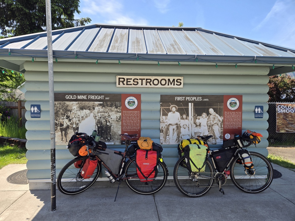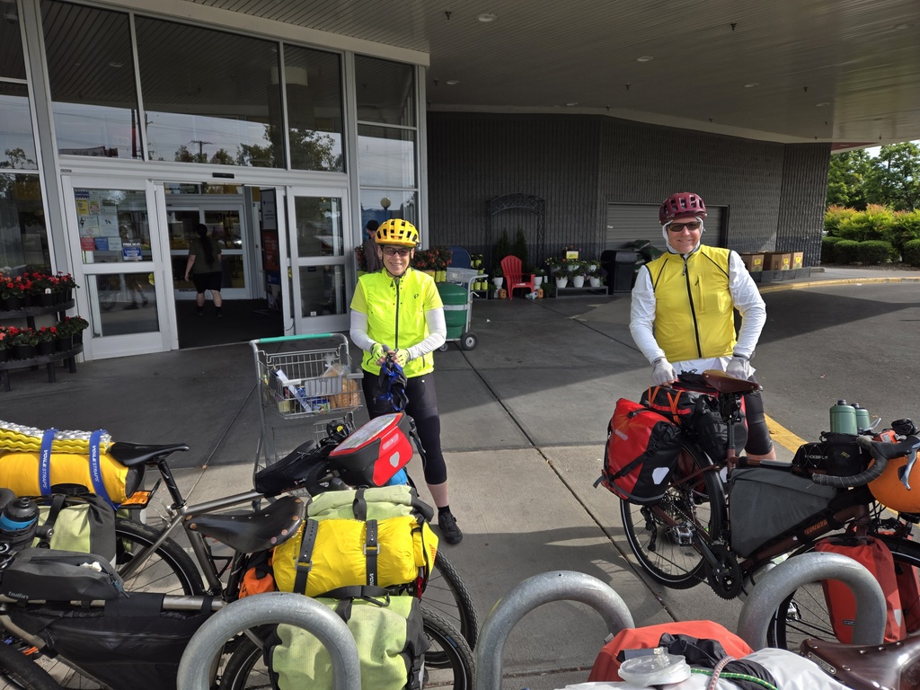 We had one more stop to make – Fred Meyer – for groceries. Shopping for food is rarely talked about in touring blogs as it’s not overly glamorous. But it has to be done every day and it needs to be thought up in advance. There is rarely a grocery store right next to camp. Cooking for 5 will be harder but we managed respectable, healthy dinners the last couple nights.