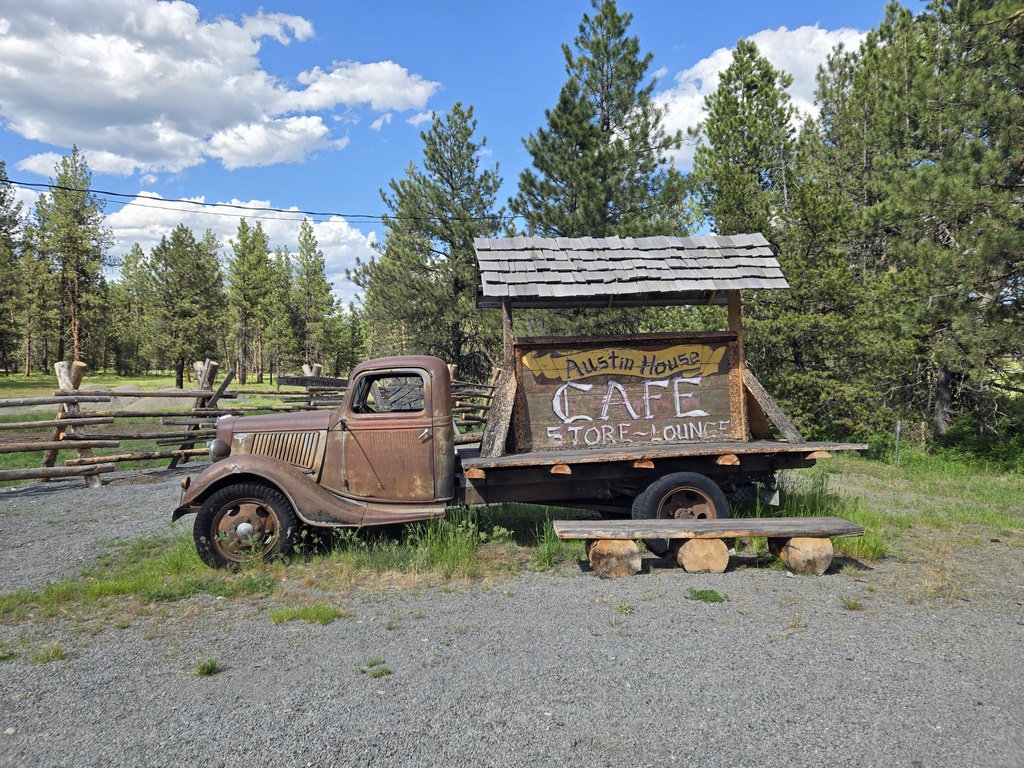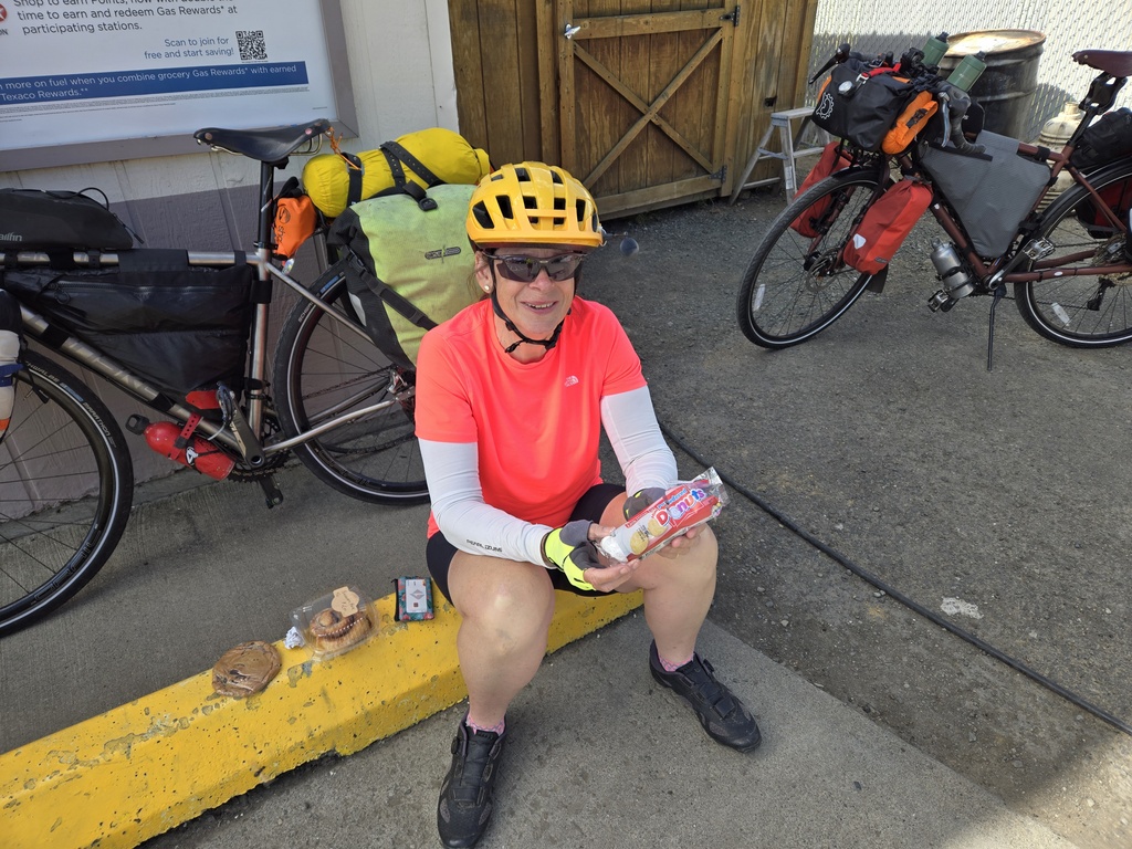 We made a quick water stop in John Day followed a few miles later with another stop in Prairie City for lunch. We found a mini-mart that served fresh BBQ meats for lunch and everyone ordered their own sandwich. Wow, that was crazy – we could have shared one between two people with ease. Adding insult to injury was the fact that we had a 9 mile climb up Dixie Summit right after leaving lunch. It was over 90 degrees and the climb was quite steep in a few places but a nice viewpoint half way up gave us a welcome break. We would have liked to done that climb in the cool morning air but it didn’t work out that way.