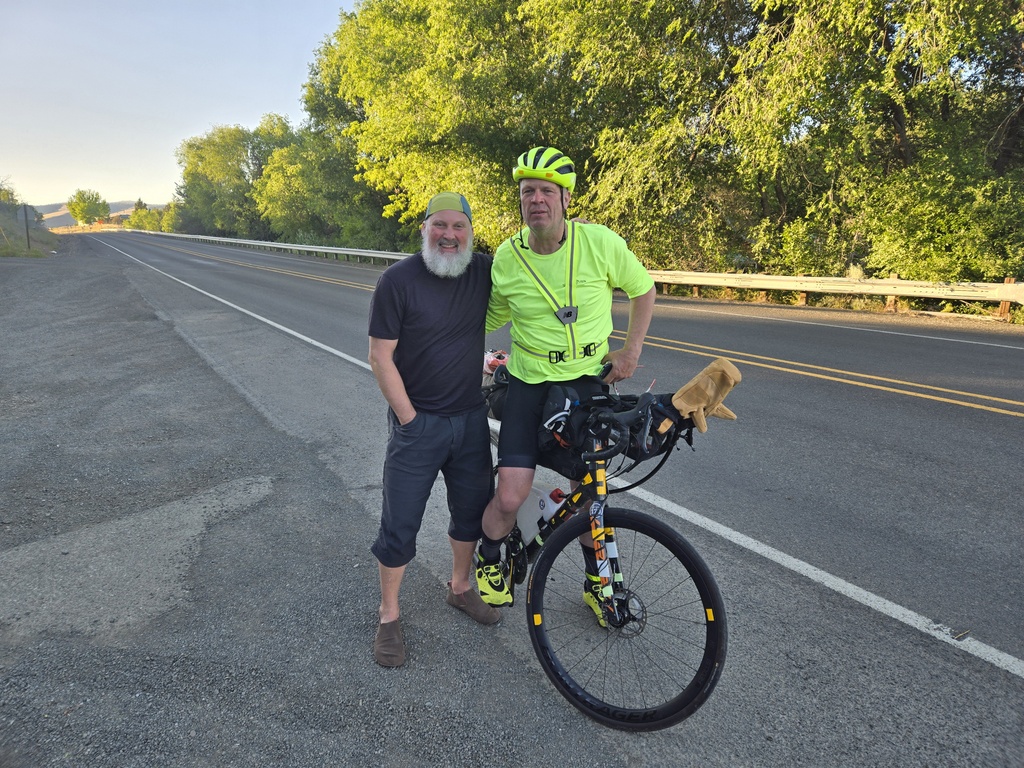 Today starts with last night. After I posted, just about when we were ready to head off for dinner, up rolled John, one of the Trans-Am racers. John sussed the place (and us) out and decided to call it a night. He’d ridden 110 miles but was still full of energy. Like Raf, whom we met earlier in the day, John was super positive and full of great stories. He grabbed a quick shower and joined us for dinner (and more stories).