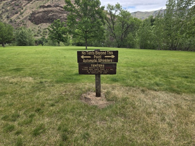 We reached Halfway around 1pm.  The accommodation options didn’t look spectacular and we knew Oxbow Park was 17 miles away, mostly downhill.   It looked like there was a nice campground in Oxbow, so the decision was made to keep riding and hope it worked out at the campground.  We picked up some supplies for dinner and headed out of town.  It was mostly downhill, so Chris went to the front and we all scrambled to keep up with him.  Dave finally asked him what the heck he had eaten in Halfway!