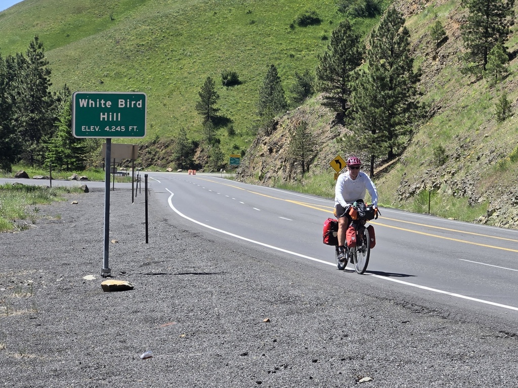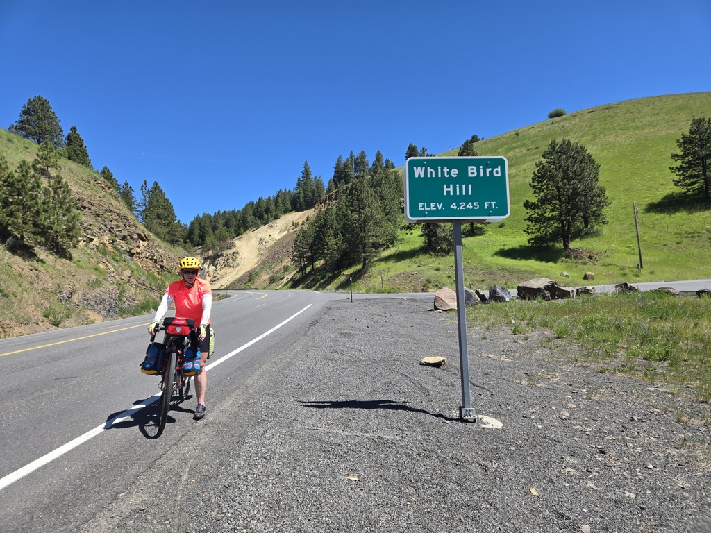 Hello! From the picturesque landscape in the heart of Idaho, where five daring bike tourists are about to tackle the legendary White Bird Hill. Starting in the rafting town of Riggins, our riders face a scenic 32-mile journey along the Salmon River before hitting the grueling 9+ mile climb on the old Highway 95. This is a stage that promises drama, endurance, grit and a true test of gastronomic fortitude.