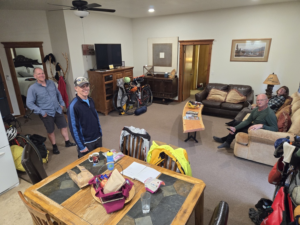 Tomorrow we head up and over Chief Joseph Pass. At about 7,250 feet, it won’t ultimately be the high point of the trip, but it will be the highest to date. It’s about 32 miles to the top, with the last 9 miles being 5-6% – we’re excited to see how our legs feel in the AM. We are currently at about 3,800 feet, should be a fun day…