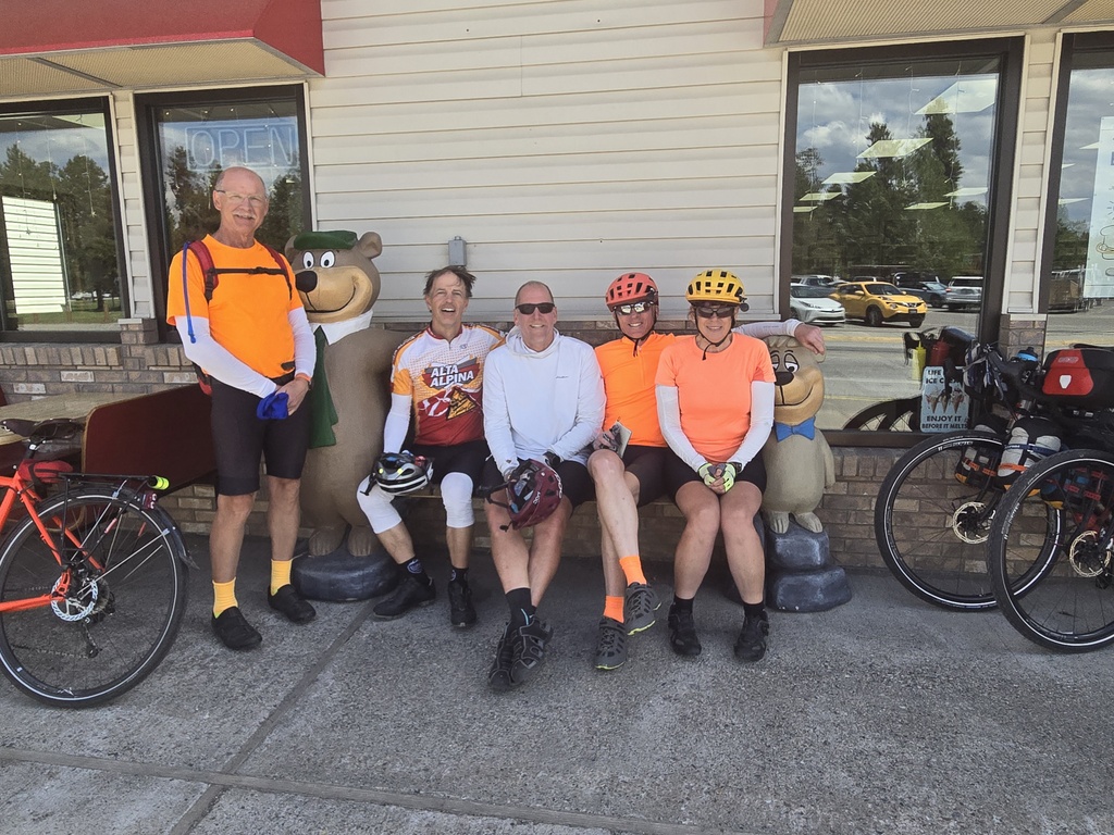 We all left Earthquake Lake as a bunch and rode together the last 28 miles to West Yellowstone. It was mostly tailwinds except for the last 2 or 3 miles. We were all getting tired now, and it was a long time from the last food stop. We all arrived in West Yellowstone on fumes. We landed at Yogi’s Waffles and Grill where we had milkshakes and a very late lunch.