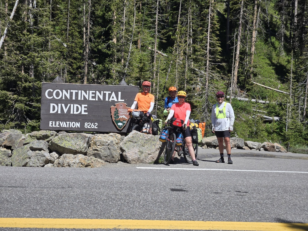 With our main objectives completed we headed to Grant Village where we will be spending the night. On the way we rode over the continental divide twice and hit a high point of 8539 feet! Personally I was a little light headed when we reached the summit. When we stopped at the 2nd continental divide sign we talked with a self proclaimed “old woman” (likely my age) who was doing an Astoria to New Hampshire ride. She is averaging 100 mile days on a carbon fiber bike with skinny tires (she volunteered that they weren’t very comfortable on these roads) and a RV supporting her. She was looking forward to getting out of diesel pickup country (sorry brother) and down to lower elevations.