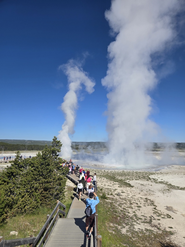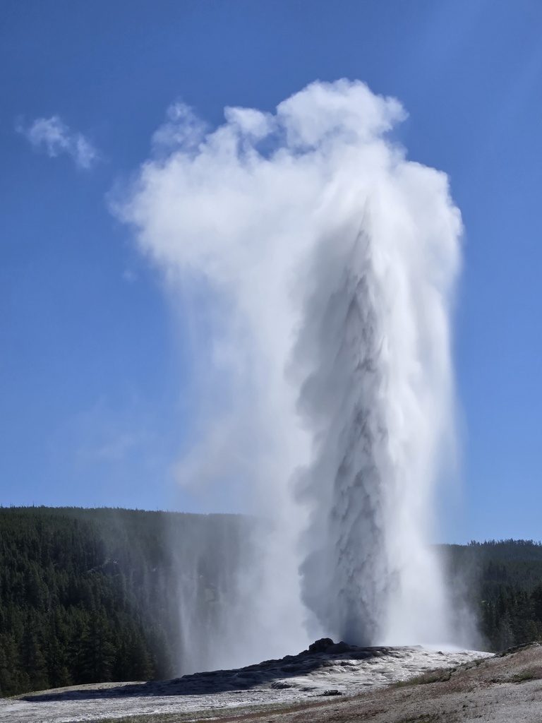 I’m happy to hear your day went so well! We really enjoyed a very early morning at those same sites with maybe 20 people at Old Faithful which was great. We have been thinking about all of you and glad the cars treated you well. We made it to the Grand Titons and met up with two cyclists riding from Astoria to Virginia. Have a fabulous ride and we look forward to more Chris crossing America!