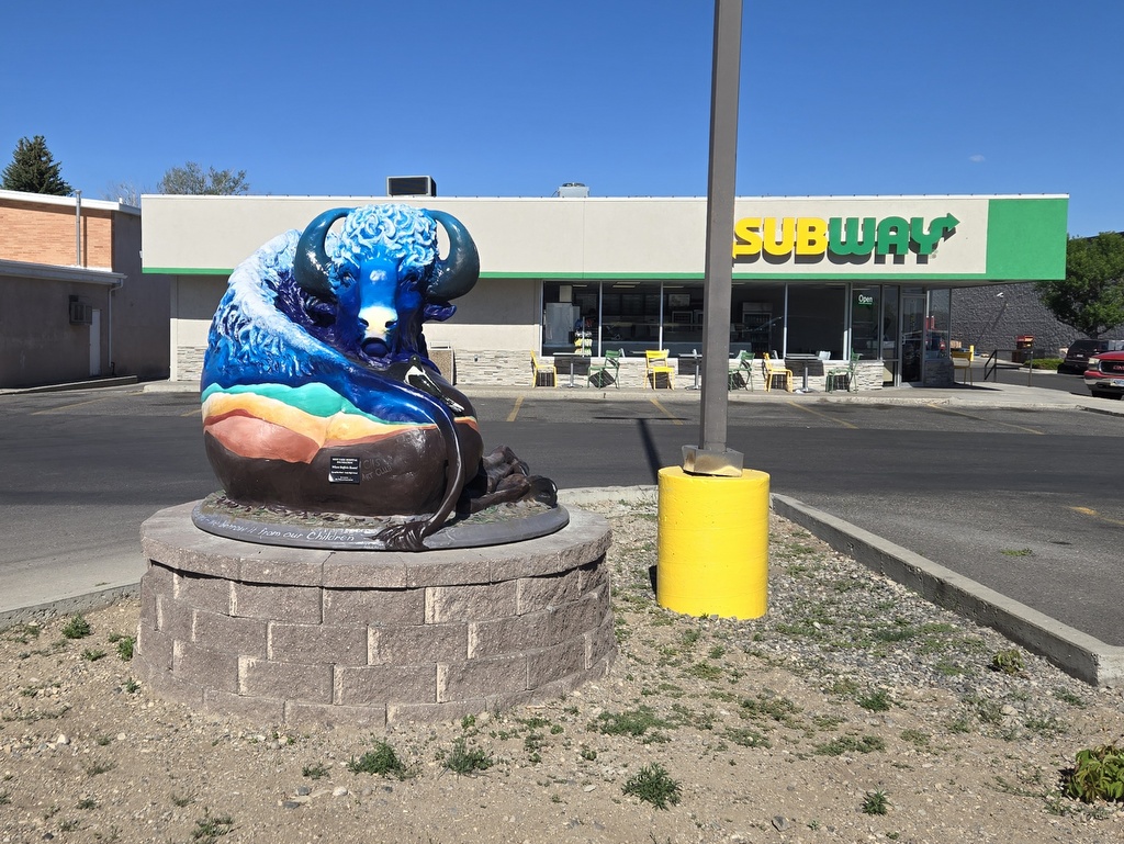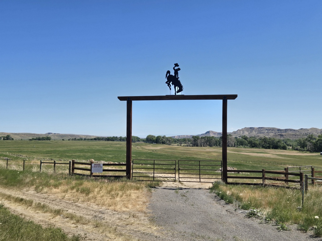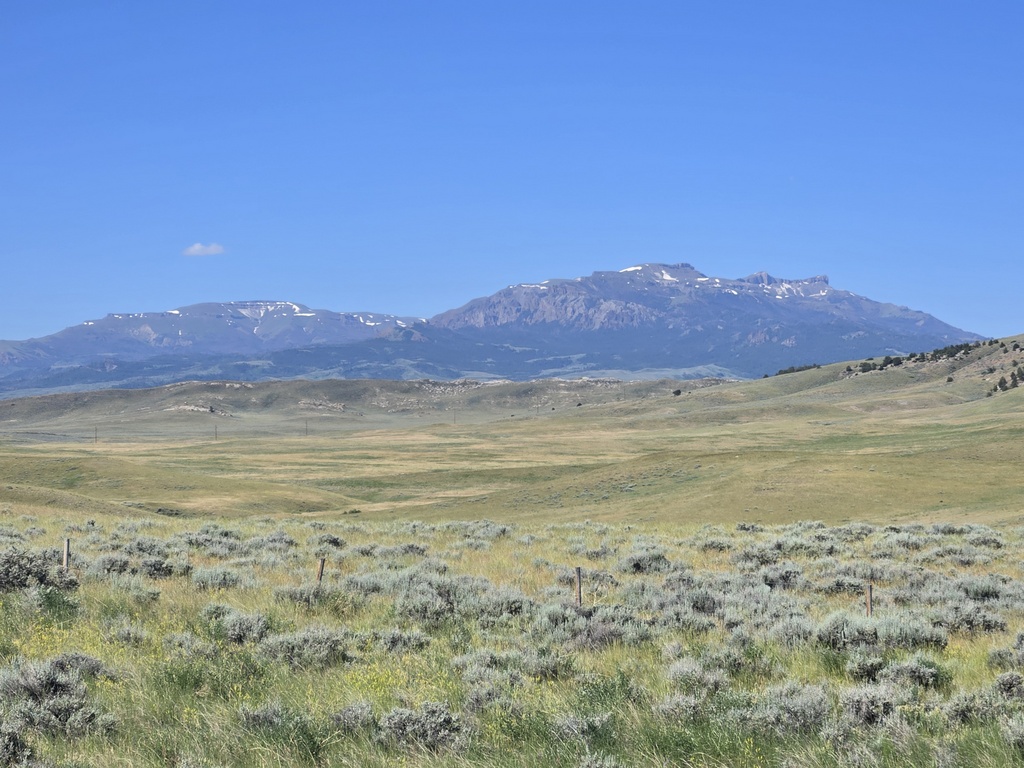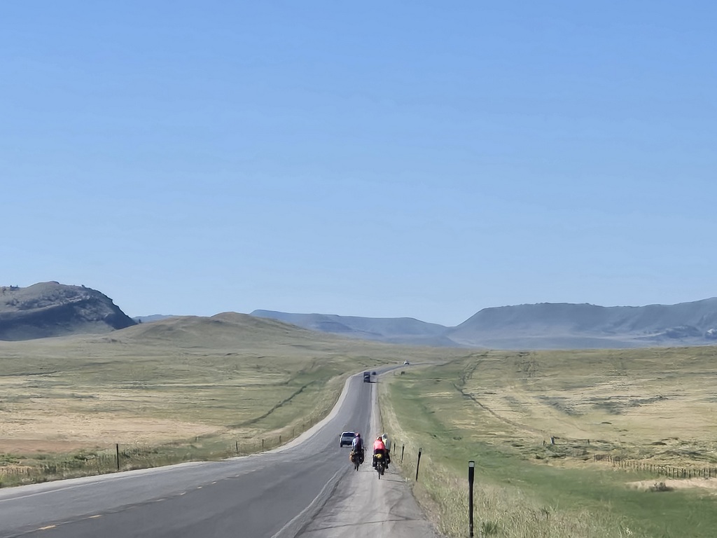 This morning, there was hardly a puff of wind in Cody. We shared a collective “woohoo” at our decision yesterday to ride the tailwinds. The wind forecast today was for tailwinds again but they never really came up. We had a late start and still arrived in Meeteetse before noon. We are in the Wyoming grasslands now for sure. We caught glimpse of the Rockies off to the right as we headed southeast but mostly the scenery was grasslands forever in all directions. I still managed a few photos, more to slow our arrival than capture amazing scenery.