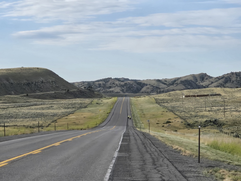 Last night we looked at the wind forecast for today – headwinds building through the morning – and decided to get an early start today. We had brekkie at the hotel and were rolling by 6:10AM. I know, that’s really early but remember, we’ve seen the Wyoming winds and know how brutal they can be, especially when against you.