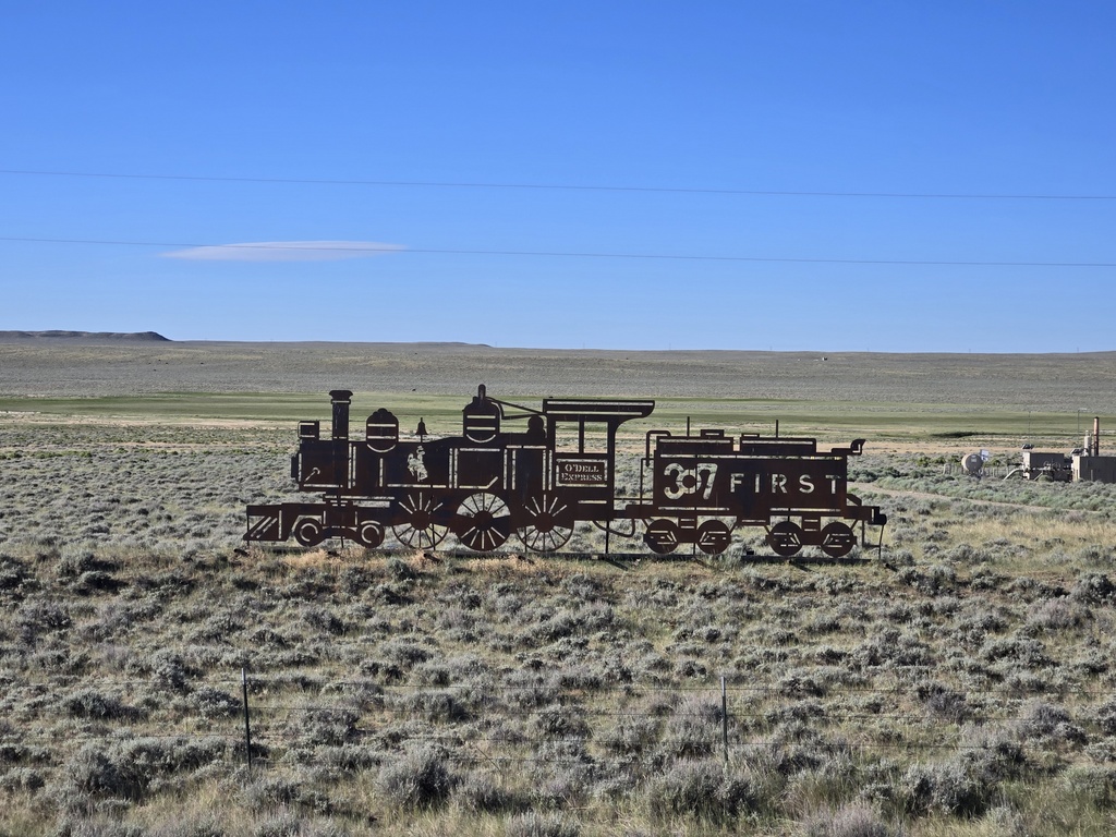 I was told yesterday by my senior editor that I didn’t need to stop for photos today because I had already taken lots of photos of the Wyoming grass and nothingness. In other words, “it’s a long day Dave, don’t go stopping all the time or we’ll never get there.” Well, Nancy was right, there was very little of anything that merited stopping today. We saw a few antelope, including some young ones but they scattered when they saw us so no photo stops there. We had some nice “cowboy silhouette art” made by the good folks at 370first.com that merited a stop or two. I didn’t stop at all of them and the gang slowed for me to catch back on for the ones I did stop at. Thanks teammates!