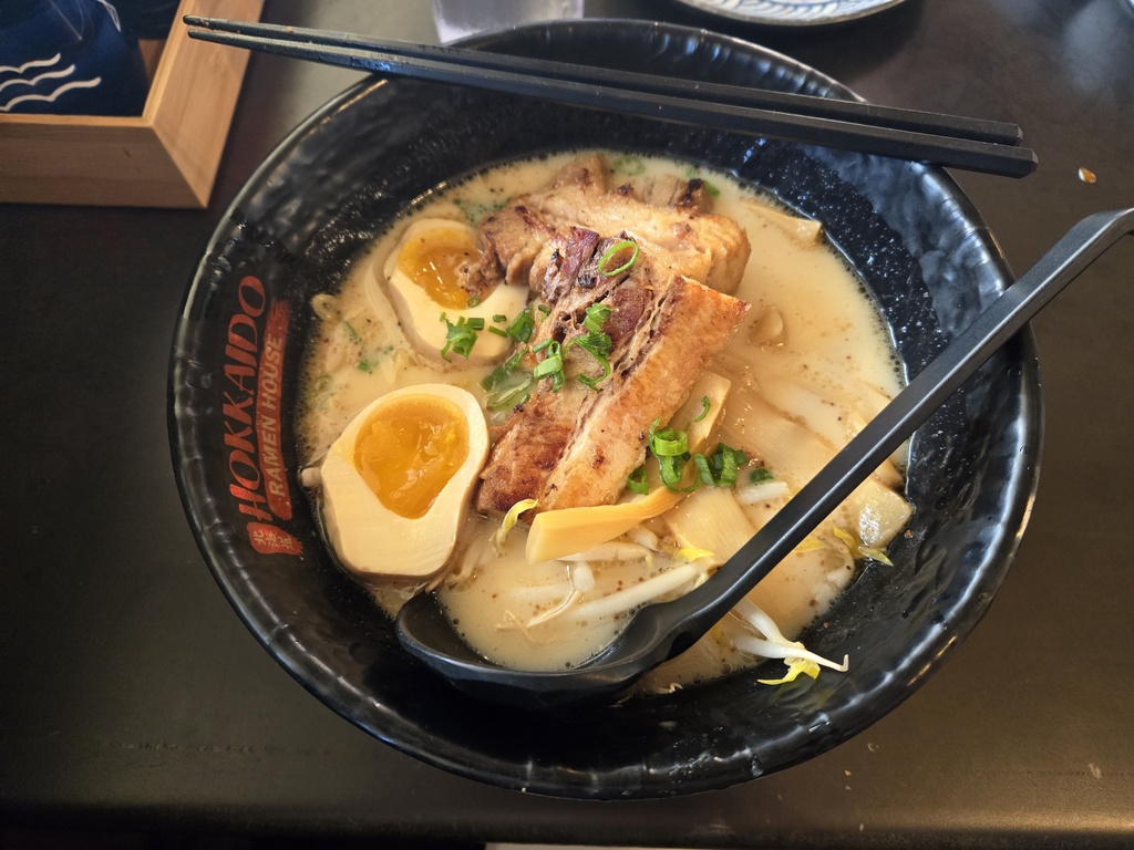 After more than a month of mostly cafe and bar meals, tonight we talked everyone into going to the nearby Hokkaido Ramen restaurant. It is a short walk from our hotel and was actually quite delicious. Though, it didn’t appear that anyone in the restaurant spoke Japanese, so no chances for Nancy to practice.