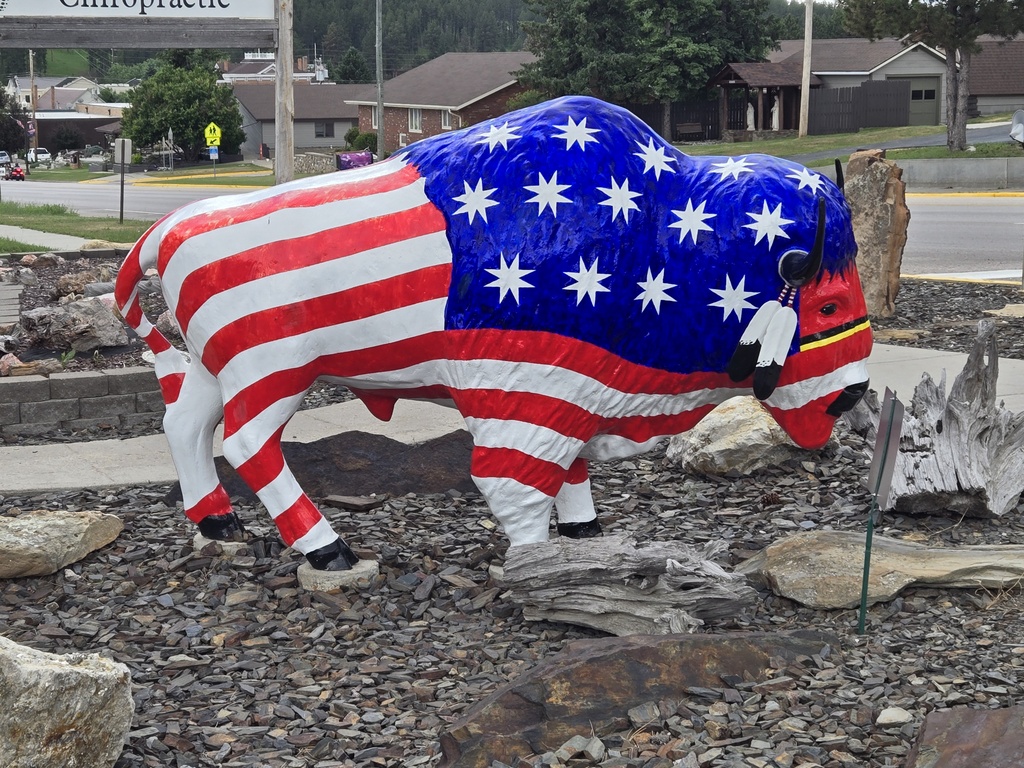 Tomorrow is the 4th of July and we are riding to Rapid City to stay for a couple days with a friend and former work colleague of Cindi’s (Lynn). We were scheduled to stop at Mt Rushmore on the way past but doing so on the 4th does seem crazy and Lynn has offered the use of her car so that we can drive out there after the 4th on one of our rest days. We are only 4 miles from Crazy Horse (the other big rock carving in these parts) and it is right on our way tomorrow, just off the Mickelson, so we’ll be there right when they open at 8AM and try seeing things before the crowds build there.