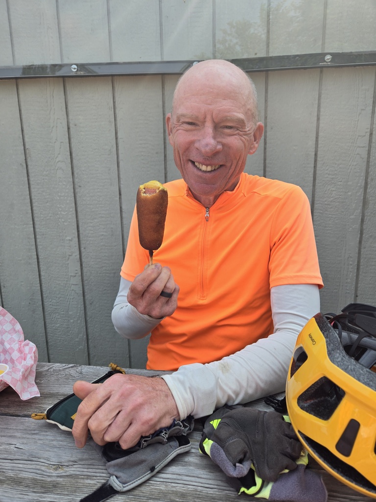 All of us took the lead today at various times and it was OK, but truth be told, we were all missing having Curtis sitting on the front of the paceline for mile after mile like he has for the last 6 weeks. I missed his strong pulls but I didn’t miss his big Casper the Friendly ghost hoodie. Every day for the past six weeks Curtis wore a billowing white hoodie to protect himself from the sun. Any time he was second wheel behind me, I couldn’t see anything but the hoodie when I checked in my mirror. You take the good with the bad I guess – missing you already Curtis.