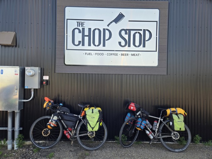 At one point while I was on the front I thought I spotted some bikes in front of us. I notched the speed up a little to try catching them and before long we did. They were a male/female couple about our ages, riding from Seattle to Chicago. They had full panniers and seemed cheery, or at least as cheery as one can determine when you talk to someone passing them on the highway. We saw the couple a few other times but never did get a chance for proper introductions. Maybe in the next couple days…