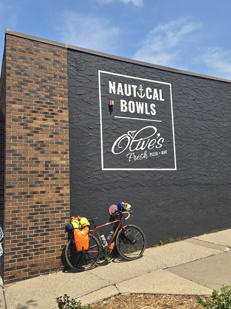 We had to wash all of our bags, our bikes and get showers before we could relax today. It was 5PM before we got everything done and were able to head out to dinner. We found a recommended Thai restaurant for dinner and it wasn’t long before nerves were settled and calm returned. For tomorrow, we’ve identified a few coffee shops and now have two days off to check them out. We’re ready for a proper two day weekend. More on Minneapolis later…