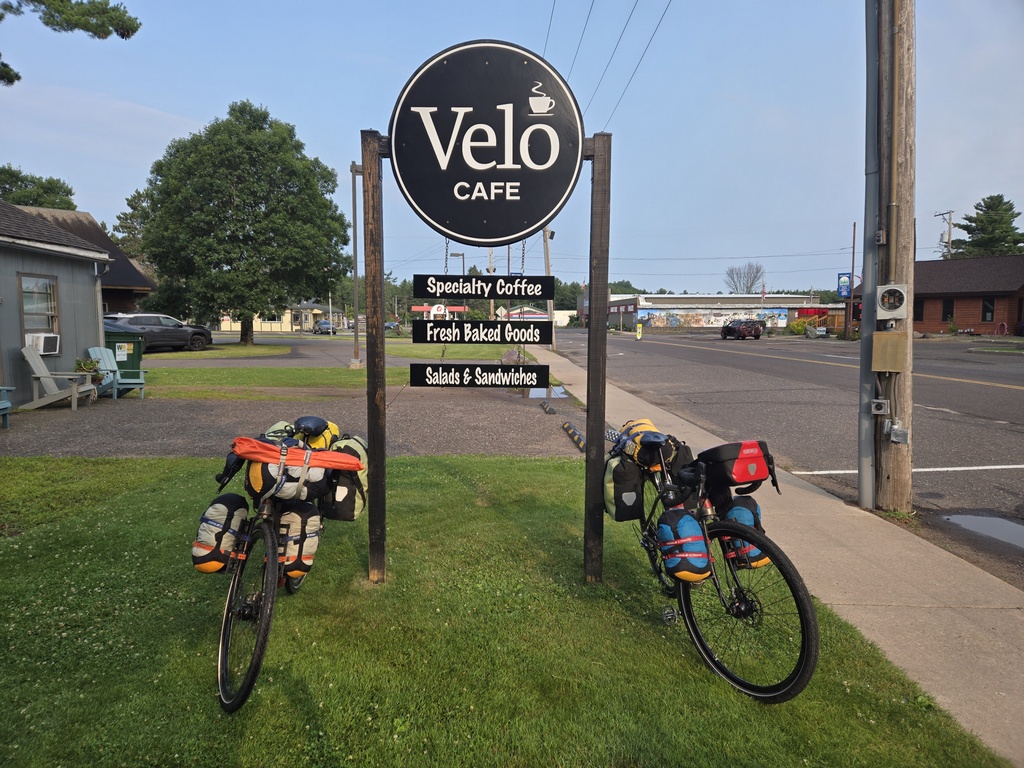 Today’s ride included pleasant weather and decent roads. The highlight of the day came 14 miles into our ride when we stopped at a coffee shop called the “Velo Cafe” in Cable, WI. As expected, it had a cycling theme, decent coffee and the healthiest breakfast burrito that I’ve had on this trip.