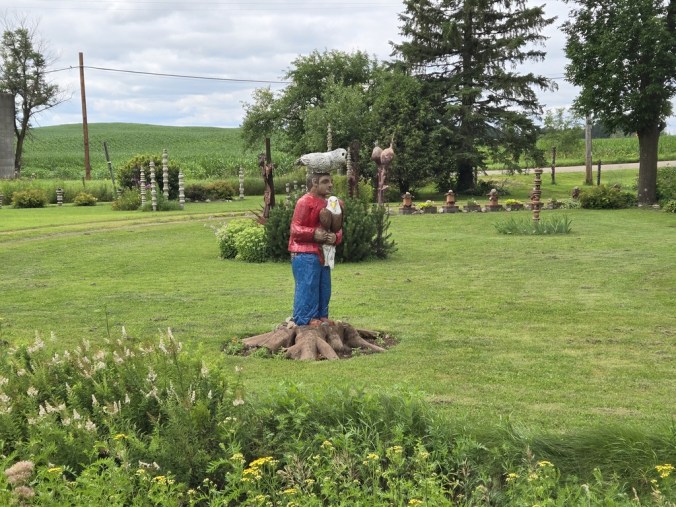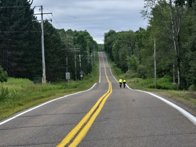 Today was a funny day scenery-wise. Until the half mark we had more northern lakes and forest. After climbing a steep hill in the middle of ride we suddenly entered the land of dairy farms and corn. We saw a lot more cows, even saw some where we could confirm udders. I suspect that whole “Wisconsin as America’s dairy “story is all about a north/south divide. Today’s second half scenery resembled the scenery we saw in Western Wisconsin before we looped up into the northern forests.