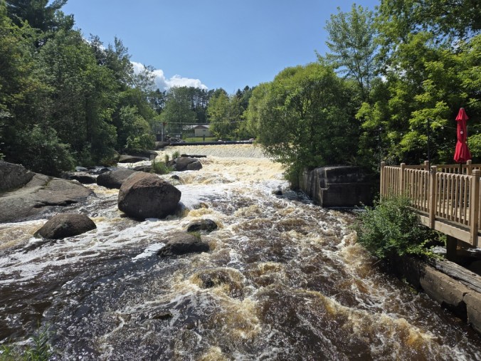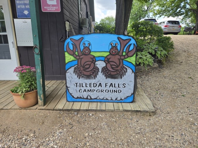 Our campsite is called the Tilleda Falls Campground. We think Tilleda is the name of the town and the falls. It’s hard to say as there is very little to the town. We had to walk over a bridge right at the falls to reach our campsite. The falls are some of the only moving water we’ve seen in Wisconsin – everything else feels like connected lakes with swamp lands between them. I think we’ve seen one river in total. Today Laura drove through Eagle River – so the water does move some, or at least the things they call rivers.