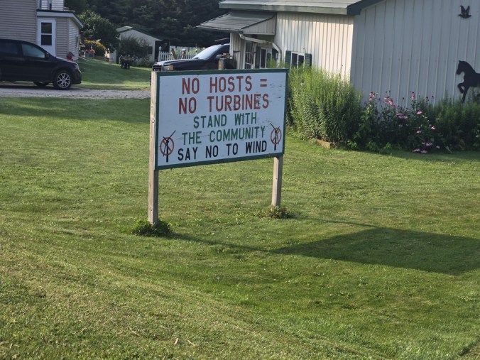 We passed though an area of farms with a good number of anti-wind farm signs as well. There were some wind turbines to the north of our route but in the area we were in it seems that at least some of the farmers don’t want them. Most of the signs talked about their children’s health being affected by the farms and how people needed to stick together to prevent them. Later I looked up the source of Wisconsin’s electricity and found it comes from natural gas, coal and nuclear. I don’t get how those forms of electricity generation don’t affect someone’s children somewhere. Perhaps it’s not the farmer’s children – Not In My Backyard. People are funny.