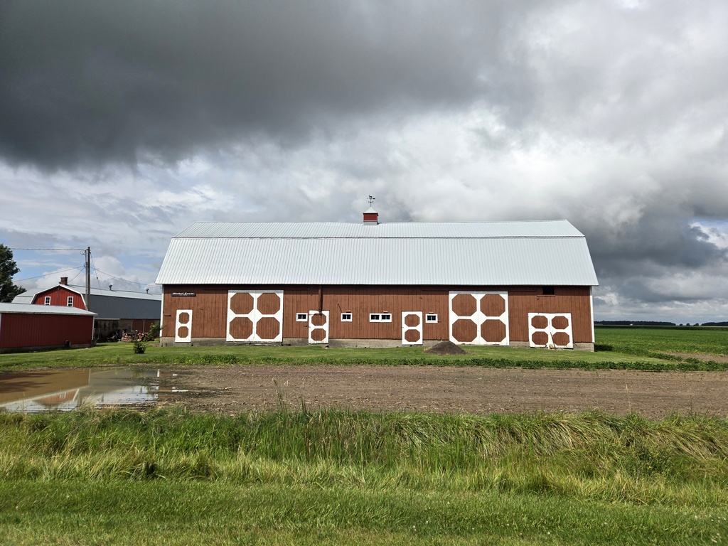 Other than rain, the other exciting thing that happened in the morning was riding through a major cucumber harvest. We saw the clever mechanical harvesters riding over the fields plucking the juicy fruits without damaging them. The harvesters fill massive trucks to the point of overflowing. As the trucks drove to the transfer point the odd cucumber would fall out. We saw a good number of them on the side of the road. It would have been very easy to stop and pick-up an entire cucumber salad, even being a little picky and not taking any damaged fruits. Michigan is the top producer of pickling cucumbers in the United States, and in 2022, the state harvested 216,726 tons, worth $45.5 million. In addition to pickling cucumbers, Michigan also produced 53.6 million pounds of fresh market cucumbers, worth $17.7 million. Who knew?