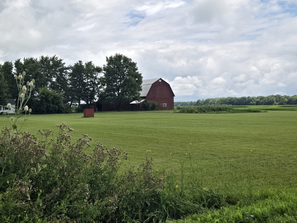 Other than rain, the other exciting thing that happened in the morning was riding through a major cucumber harvest. We saw the clever mechanical harvesters riding over the fields plucking the juicy fruits without damaging them. The harvesters fill massive trucks to the point of overflowing. As the trucks drove to the transfer point the odd cucumber would fall out. We saw a good number of them on the side of the road. It would have been very easy to stop and pick-up an entire cucumber salad, even being a little picky and not taking any damaged fruits. Michigan is the top producer of pickling cucumbers in the United States, and in 2022, the state harvested 216,726 tons, worth $45.5 million. In addition to pickling cucumbers, Michigan also produced 53.6 million pounds of fresh market cucumbers, worth $17.7 million. Who knew?