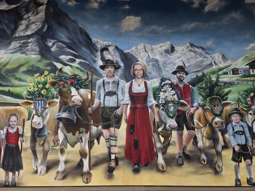 The family mural was super creepy. And yes, the last four days have been about as flat as they come. Makes it easier to do longer miles.