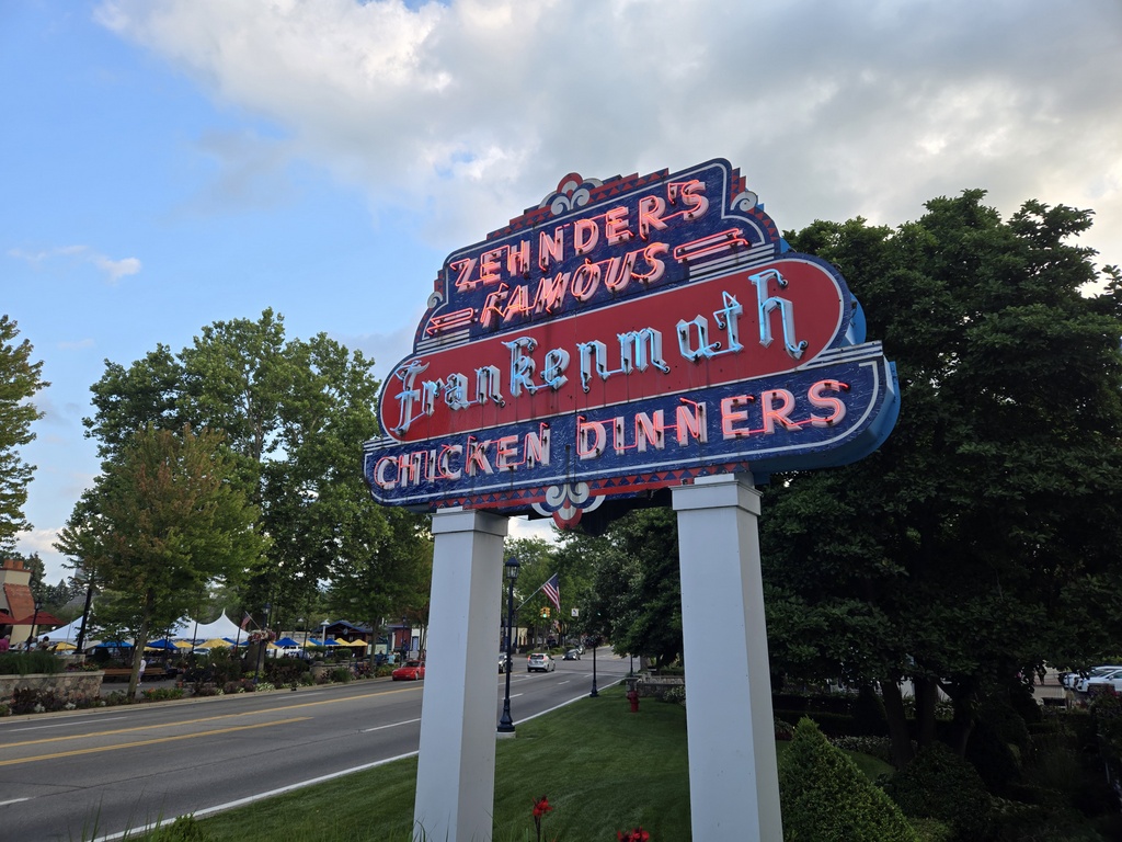 We had to walk 10 minutes back through “little Bavaria” for dinner at Zehnder’s Frankenmuth where we had their self declared Famous Chicken. We had the “standard” dinner which was basically all-you-can-eat Thanksgiving dinner with chicken instead of turkey. Everything was tasty but just like on Thanksgiving itself, we all ate a bit too much. I’m sure glad we have 80ish miles to ride tomorrow.