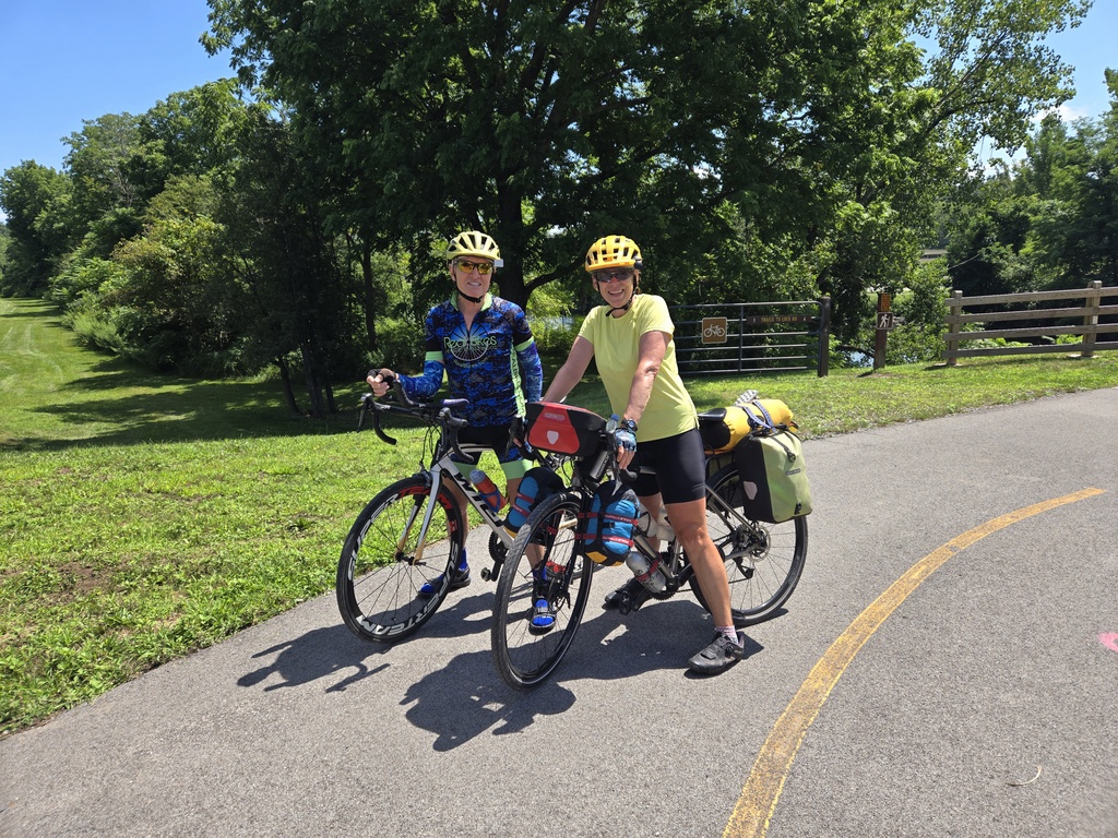 On the part of the path after Rochester we stopped at a junction to check our maps. A chap riding the other way saw us and stopped to have a chat. He was a real character telling us that he lived in Florida but was up in New York visiting his “kid brother”. He said that he normally rides 30 to 60 miles per day. He had a fancy, ultra-light carbon fibre bike. He gave us lots of tips about the canal path ahead of us, road surfaces, dangerous sections, etc.