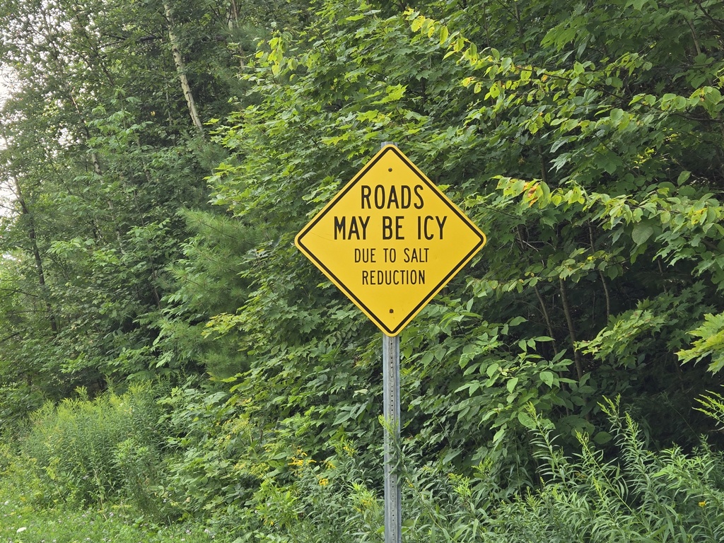 No summit sign – everyone is trying to cut down on salt, even the road guys