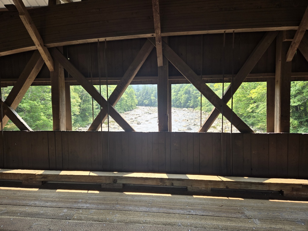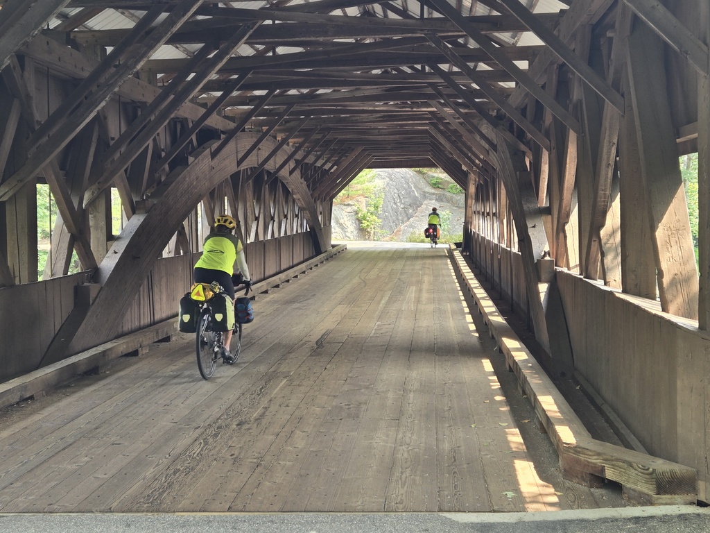 We had a short ride today so we took our time coming off the pass. We made a couple lookout stops and then took a nice diversion ride through the Albany Covered Bridge on Passaconaway Road. There are a lot of odd names in these parts (odd to us that is), such as Passaconaway. Many are derived from the Pennacook Indians, indigenous peoples who inhabited the region at the time of colonization. Passaconaway was a Pennacook chieftain from the 1600s.