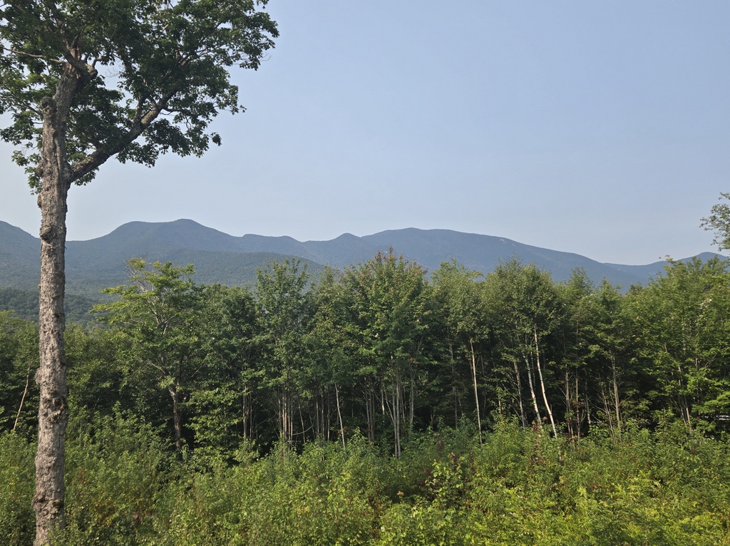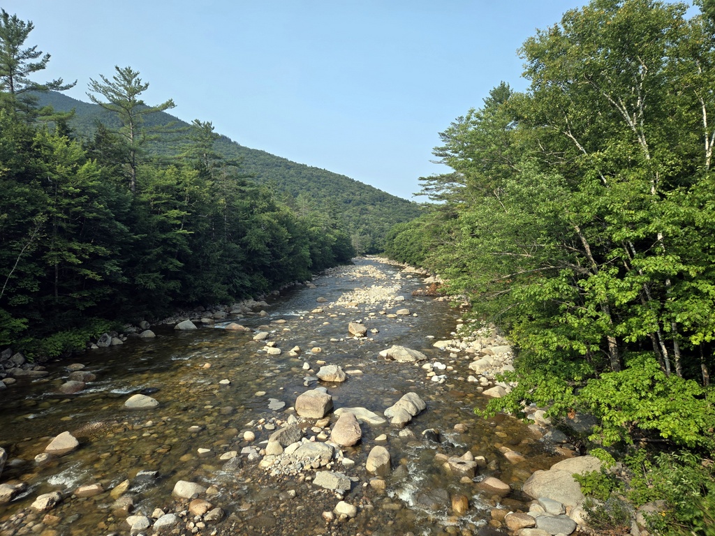 Once we crossed the river this morning we had 14 miles uphill to ride to reach the high point of the day at Kancamagus Pass. It took us a while to clear “schtickland” but traffic was not too bad and the temperatures were comfortable. There was also a nice shoulder and a bike path that we rode for a short spell. The climb was pretty gentle all but for the last 2 miles. In fact we didn’t need out lowest gears until the very steepest bits of that last section. There are a couple viewpoints looking out over the White Mountains and because we were in our “short day, go slow mode” we duly stopped to take a look.