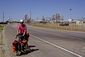We rode to Rawlins and had a morning snack at store. Rawlins has a huge Sinclair oil refinery. The natural gas burn off was going full steam as we rode past. Next we rode 13 miles on Interstate 80 (there aren’t many choices in Wyoming). We exited at Walcolt but really, the freeway was not that bad. From there it was only 20 miles to Saratoga and the end of the day.