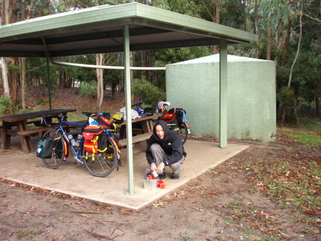 Dave getting the stove started at the Blackrange Campground