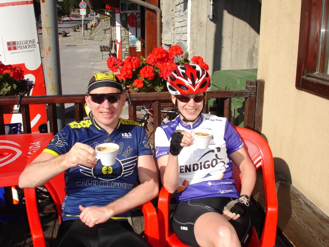 We needed an easy day today so we opted to ride over the relatively low Col de Montgenevre, across the Italian border, for a coffee. Ross got to show off his Italian skills and order us all proper coffees.