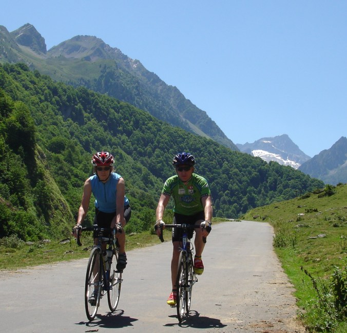 As Pyrenean Cols go, the Aubisque is pretty tough. We had lots of company on the way up with many riders, some from our group and lots of walkers. The tour buses of all the tour teams also passed us. We weren’t the fastest riders, but we were passing some folks and making pretty good time.