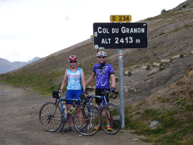 - Getting caught up in riding the 5 eagles, which are 5 passes you can ride within a 7 day period to get something from the local chamber of commerce (or Dave thought it was but we all started to wonder). The fifth pass (Col du Granon) was, we thought, going to be a relatively easy one, as it was only something like a 45k ride from our house. The climb turned out to be pretty hard – pretty steady climb without many breaks, and part way up it started to rain. When we finally got to the top it was freezing, we were wet and the wind was blowing. Fortunately there was a little coffee shop (a hut really) at the top that served some lovely hot chocolate, so we fortified ourselves for a bit before heading back out into the cold to make our way down. After all that, when we went to the local chamber of commerce to see what we got for riding the 5 eagles they said that wasn’t really going on any more. Dave tried to back out the door quietly as we all came after him. Fortunately for him they did have some nice bike jerseys that we could buy as souvenirs…